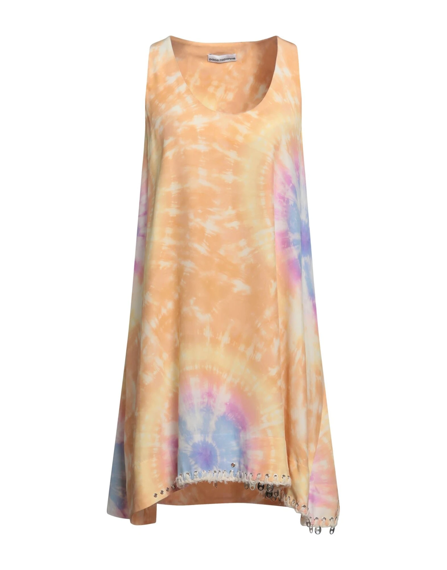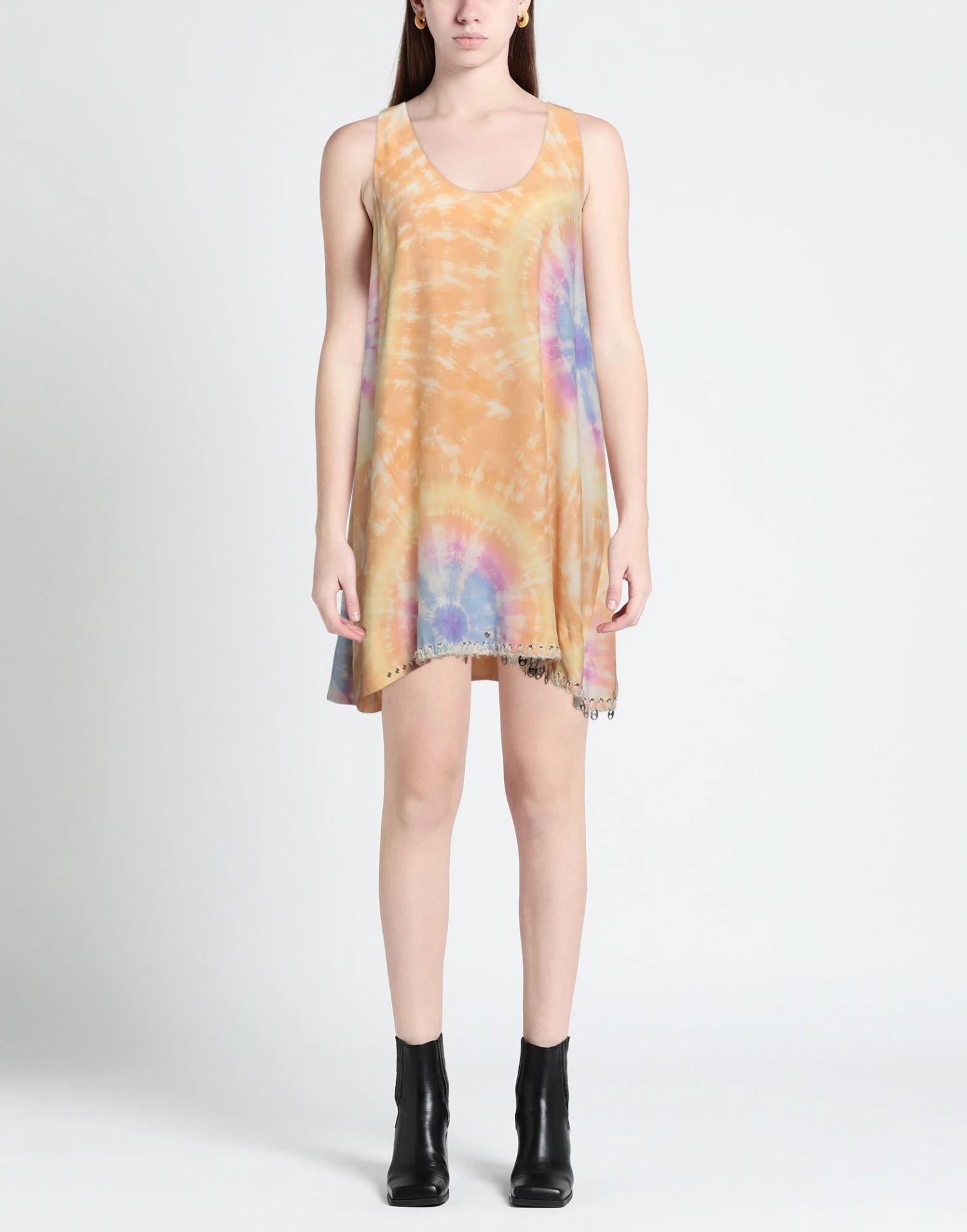 cady, metal applications, multicolor pattern, round collar, sleeveless, unlined, no pockets, trapeze style