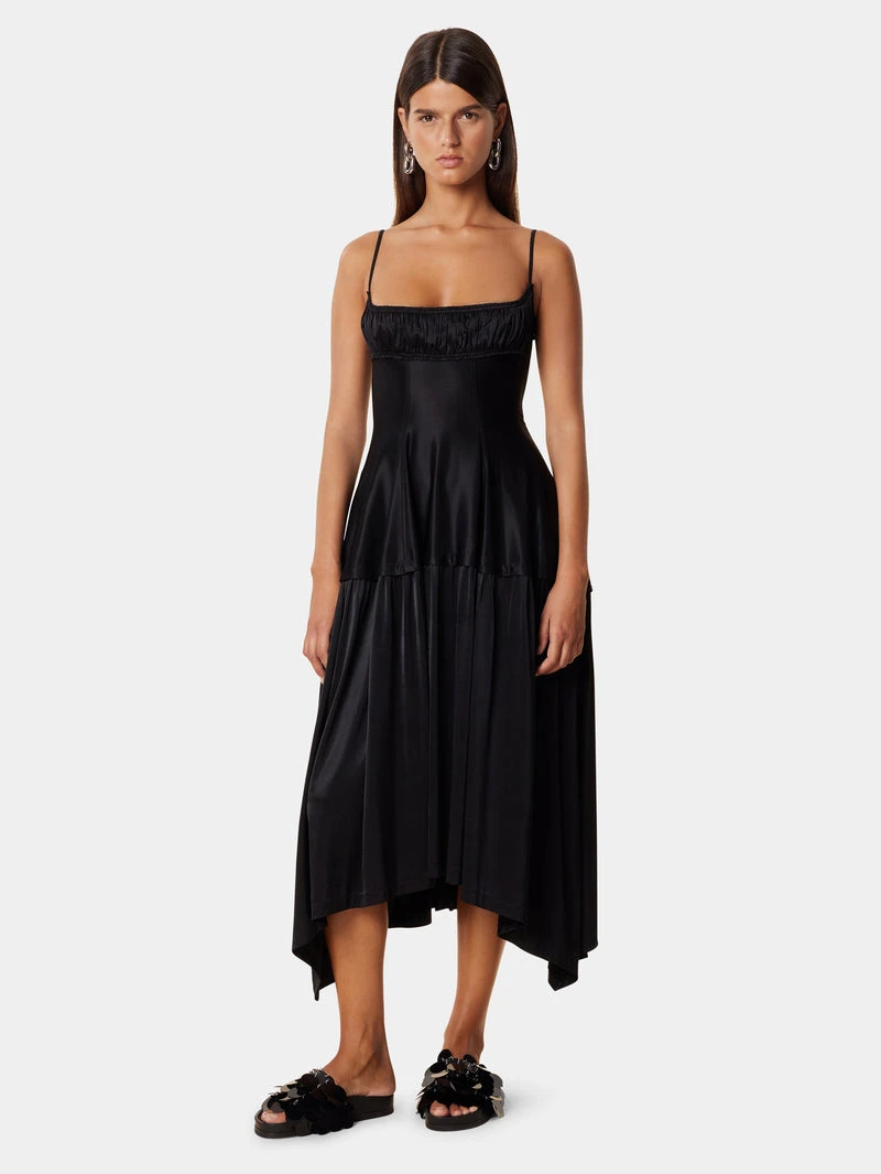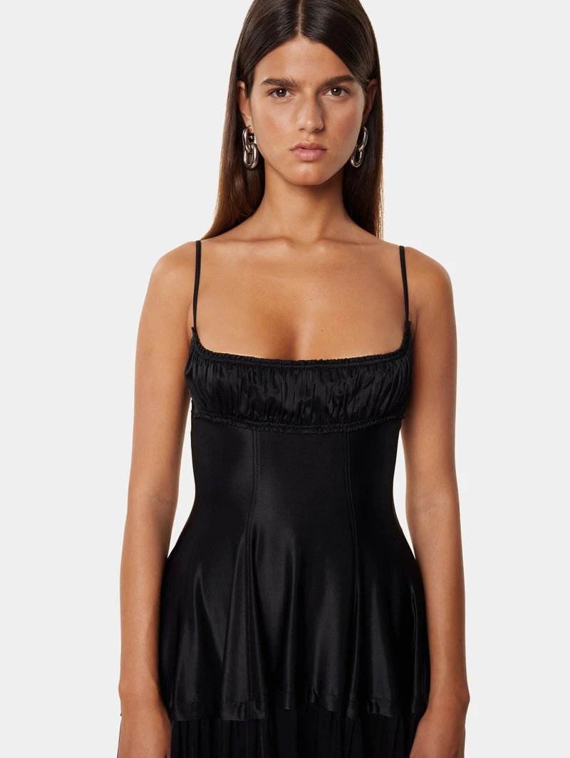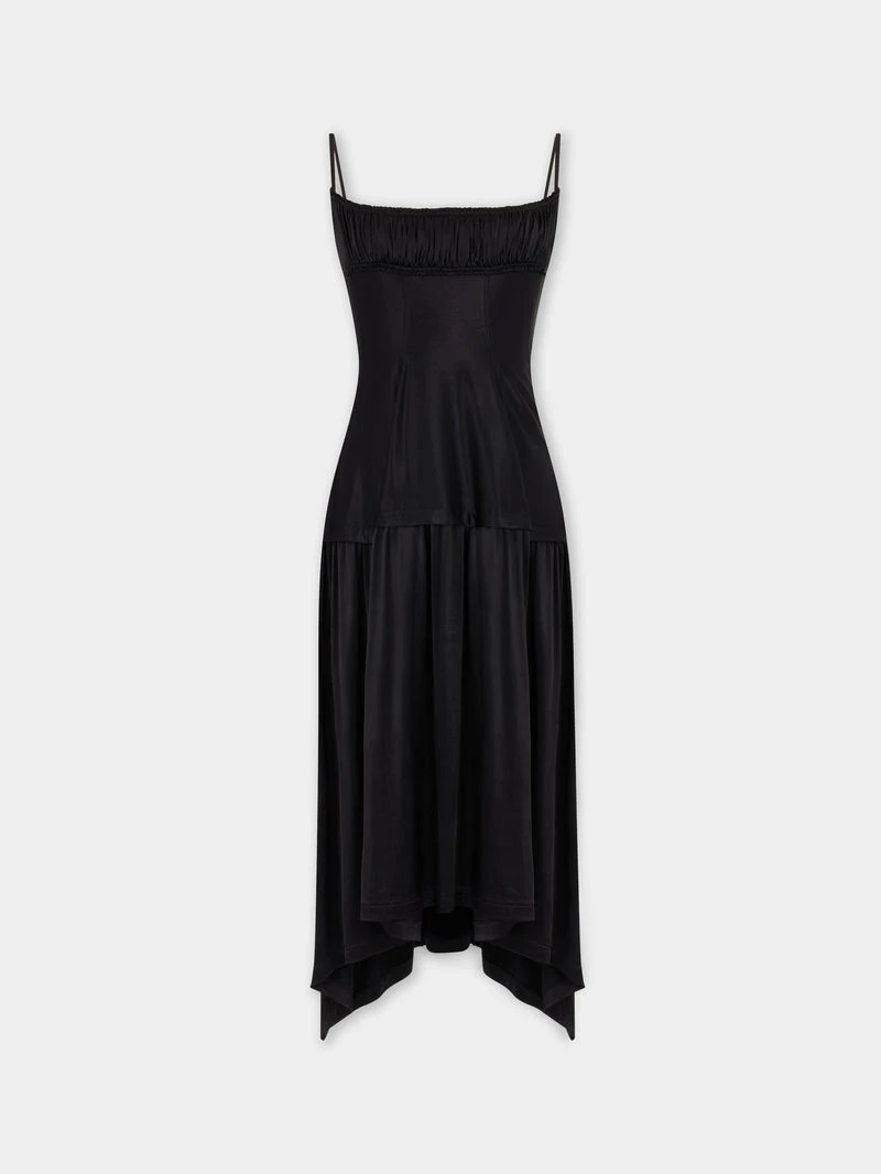 Black mid-length dress Fitted cut Square neckline Thin straps