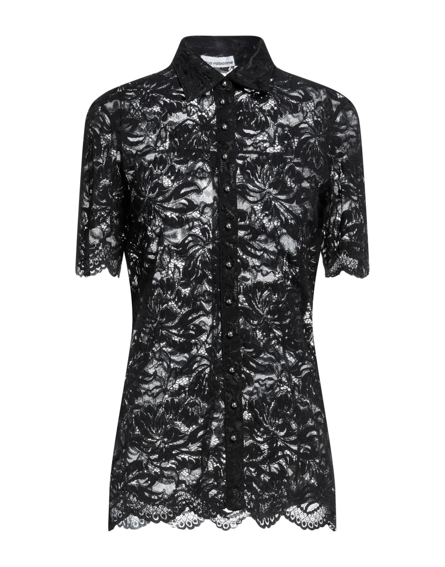 lace, no appliqués, solid color, classic neckline, short sleeves, button closing, no pockets, stretch, small sized