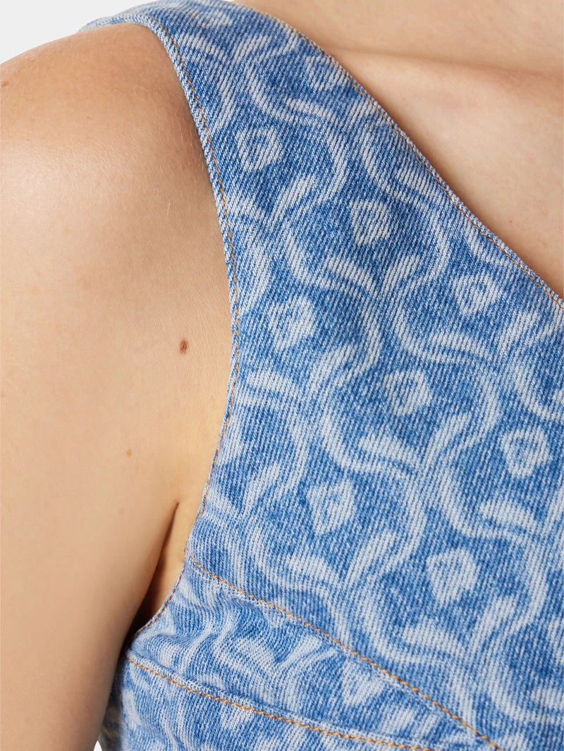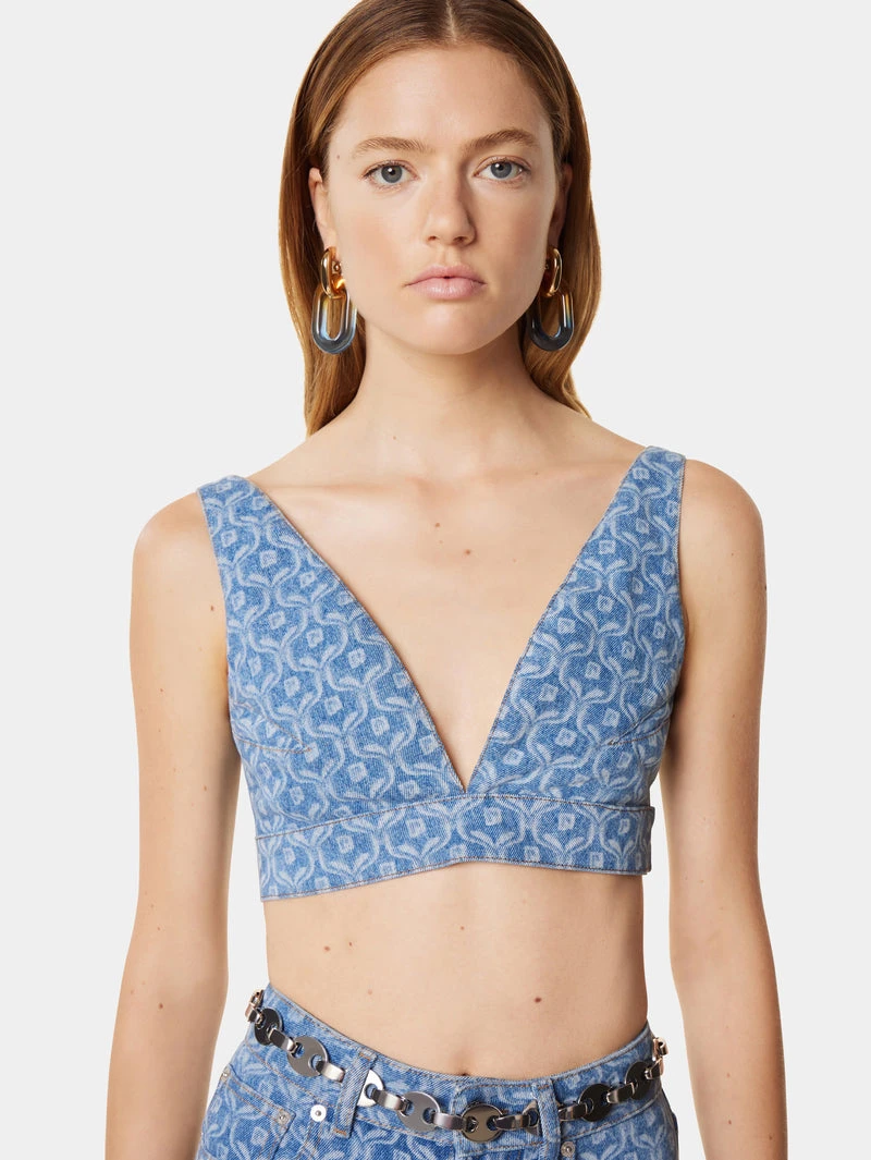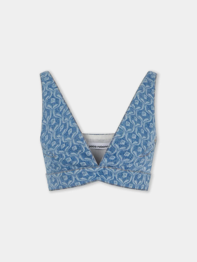 Blue denim crop top Fitted cut V-neck “Paco Rabanne” logo