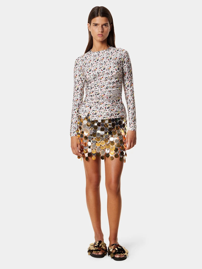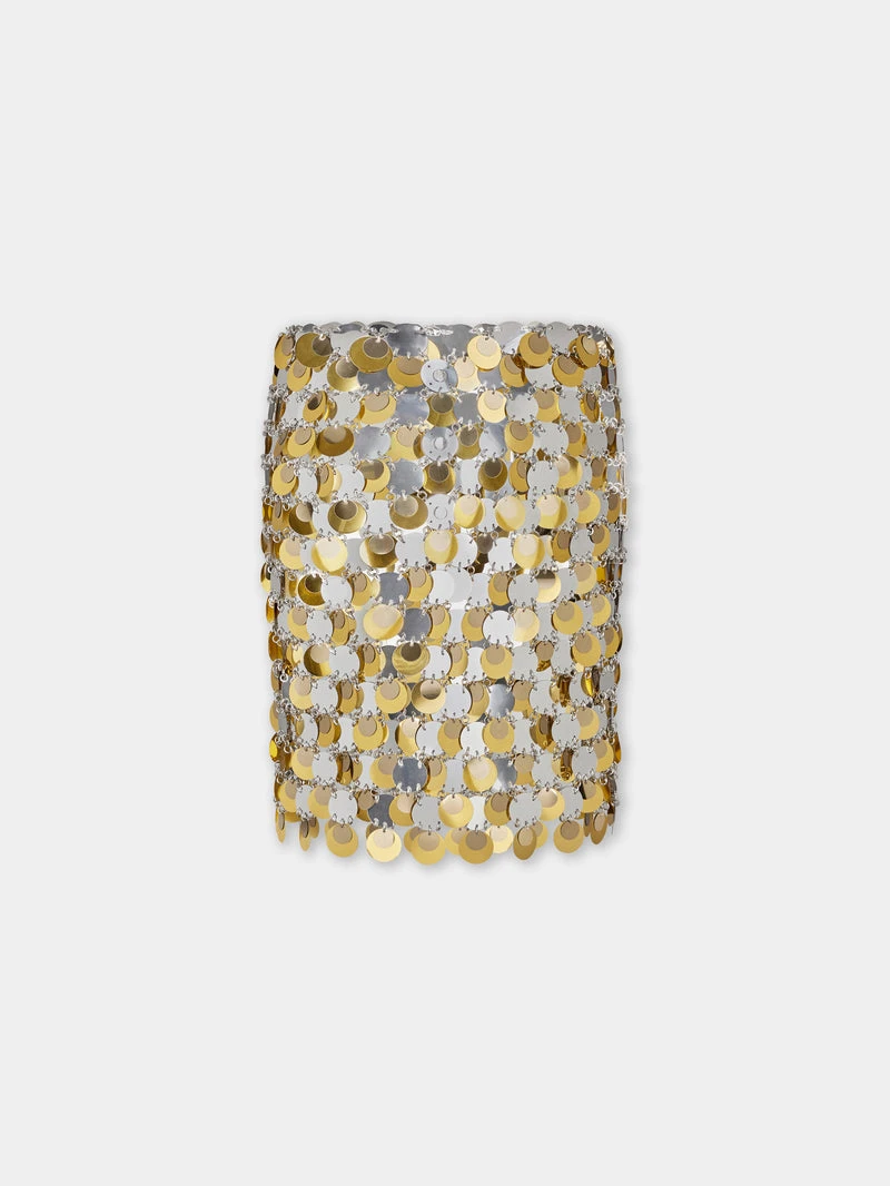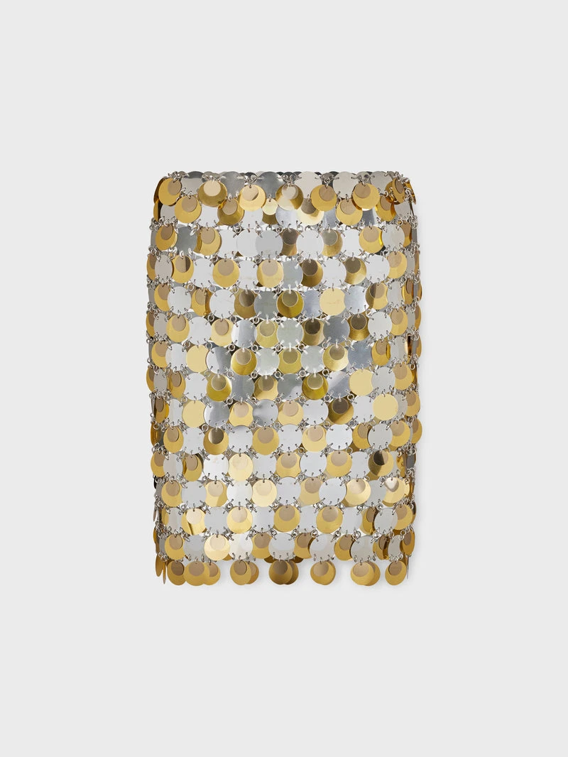 Skirt crafted from a subtle blend of metal pieces, in true Rabanne fashion. Gold and silver tone Fitted cut Snaps in the back