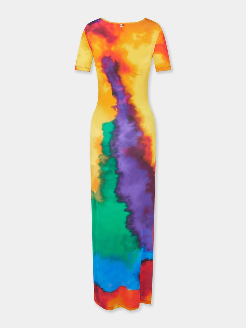 Multicolor long dress Fitted cut Round neck Short sleeves