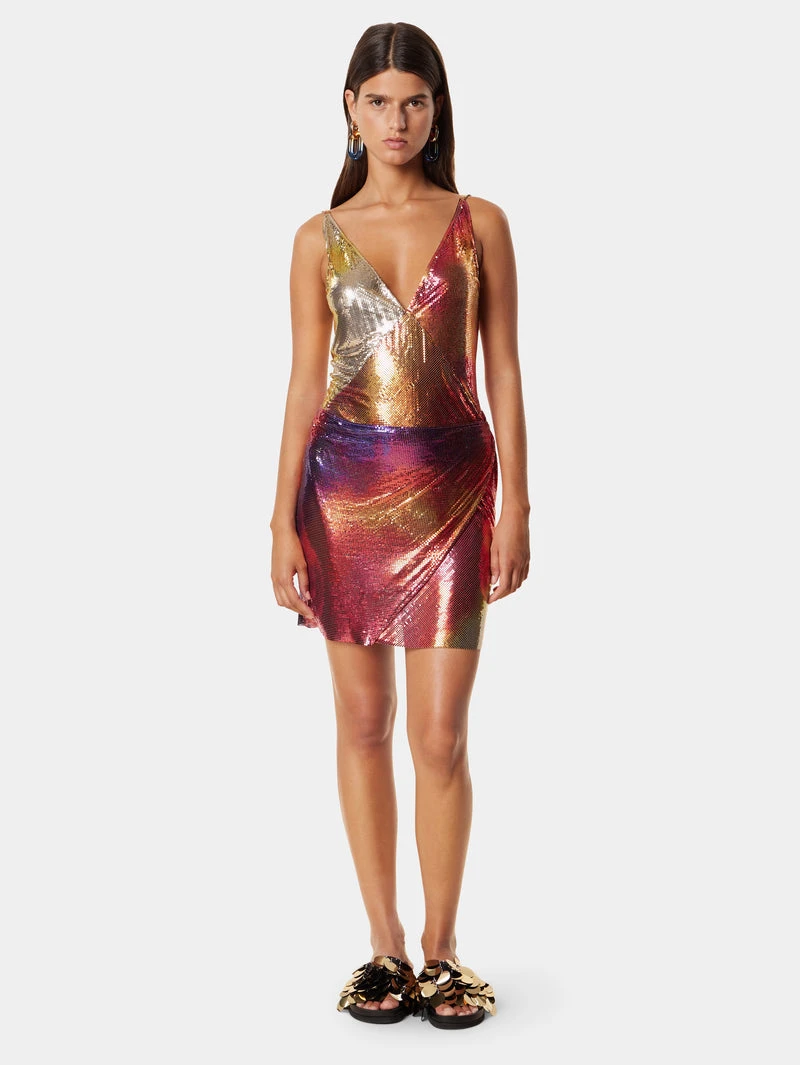 Mash short dress Backless Color gradient Fitted cut Wrap skirt Sleeveless
