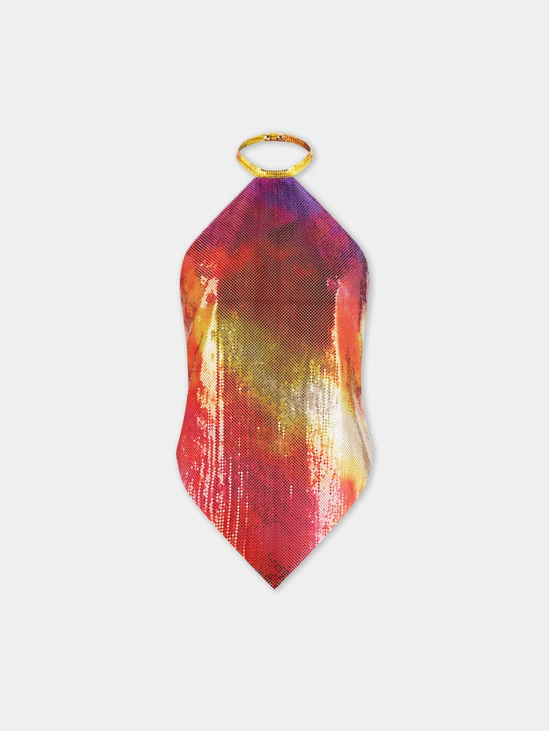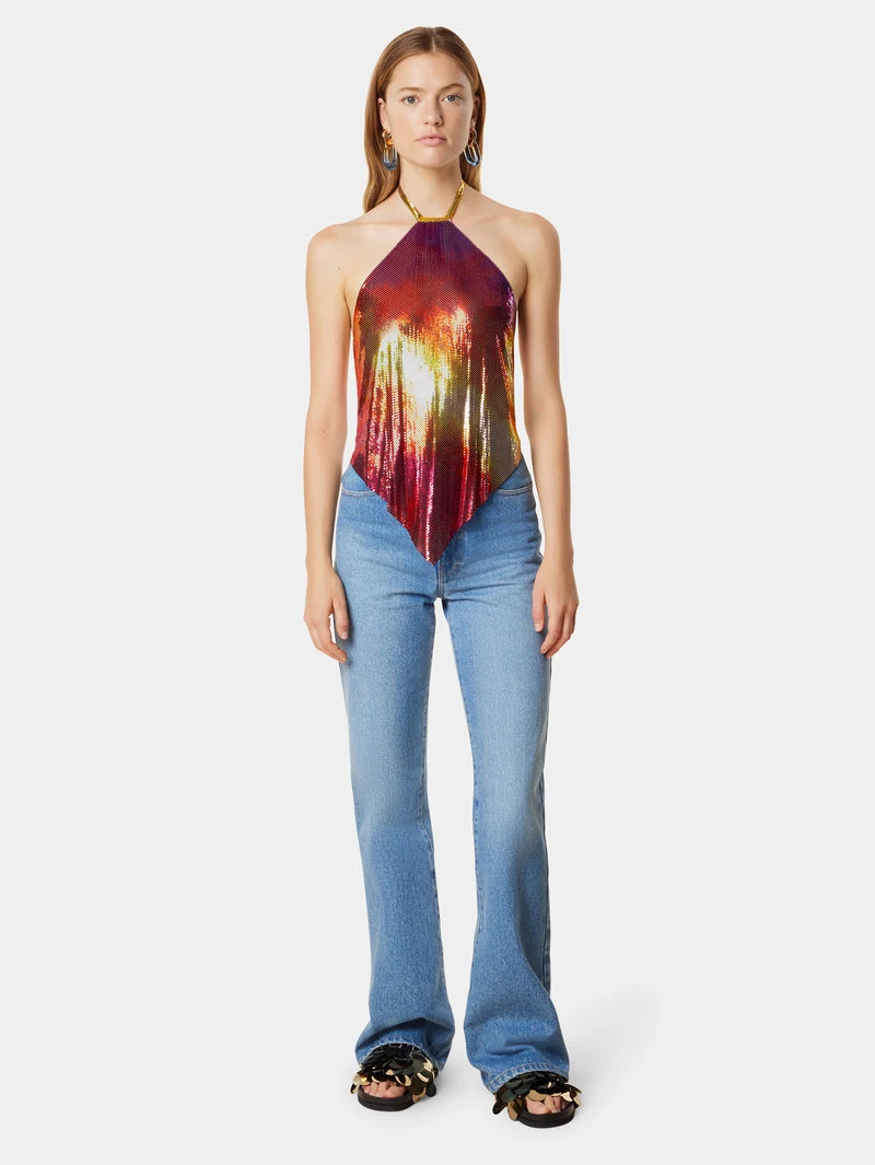 Backless top made from mesh Sleeveless Color gradient Fluid cut