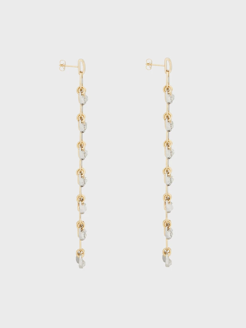 These lightweight earrings are made from silver eight links, a Paco Rabanne signature material. Material: 100% aluminium. This pair comes in gold and silver. Sold in pairs.