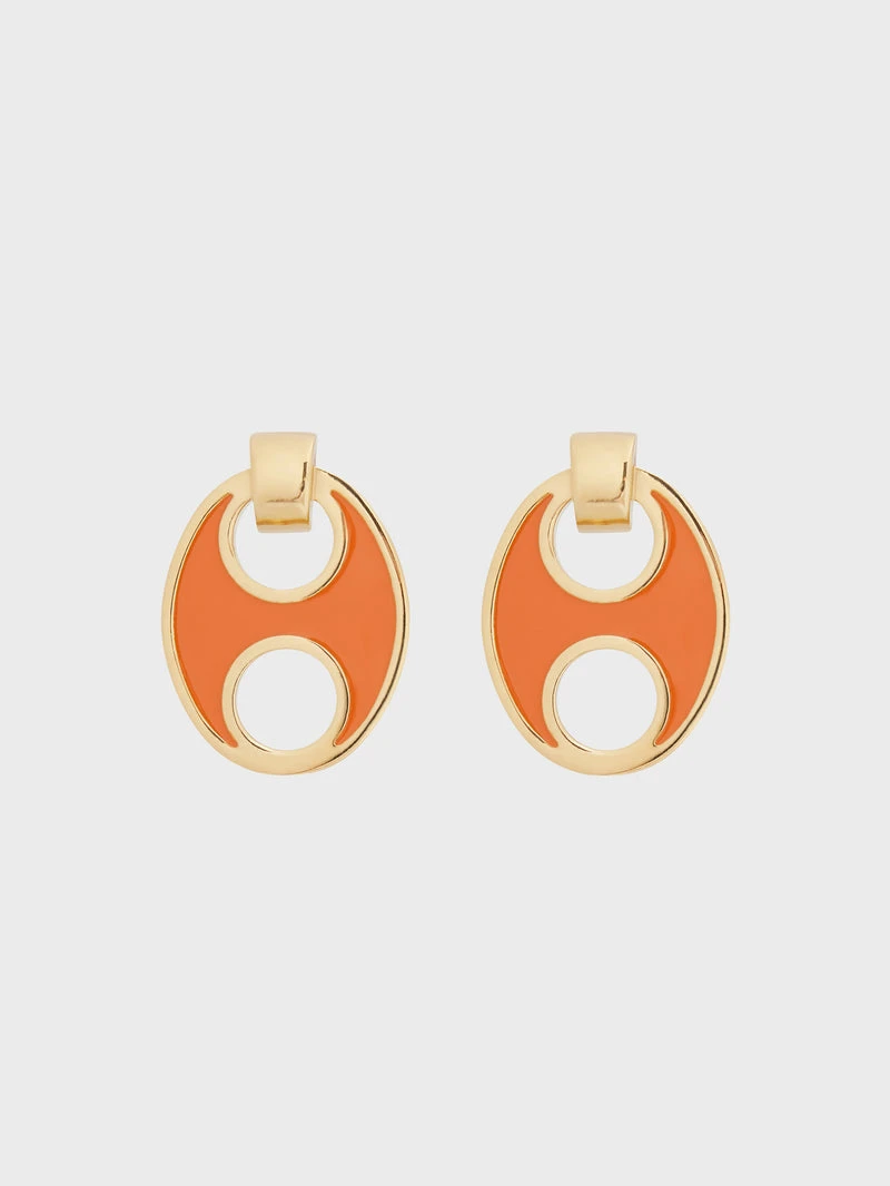 Eight-shaped earrings in orange brass, one of Rabanne’s most iconic shapes. Sold in pairs. The perfect pair for a summer look.