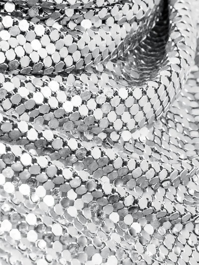 The Pixel Chainmail Scarf is crafted from metal in a polished silver-tone finish, featuring snap fastening and chainmail design. 100% Metal