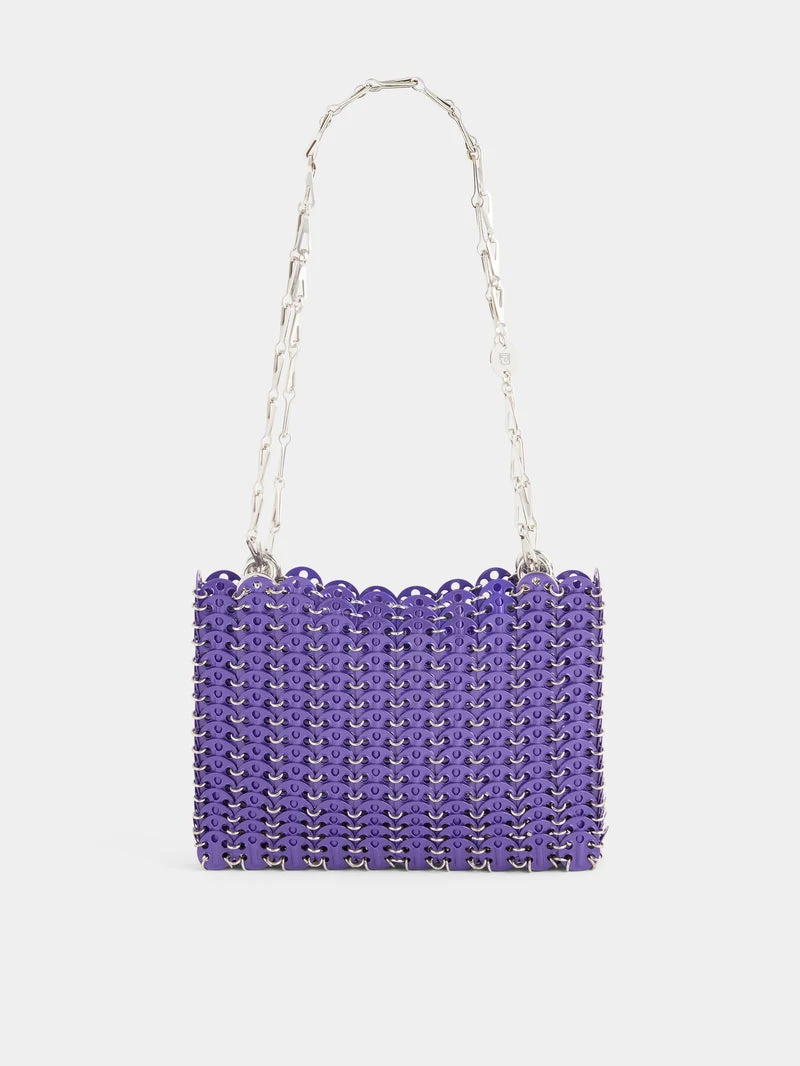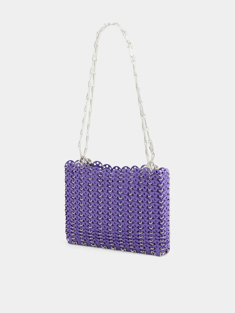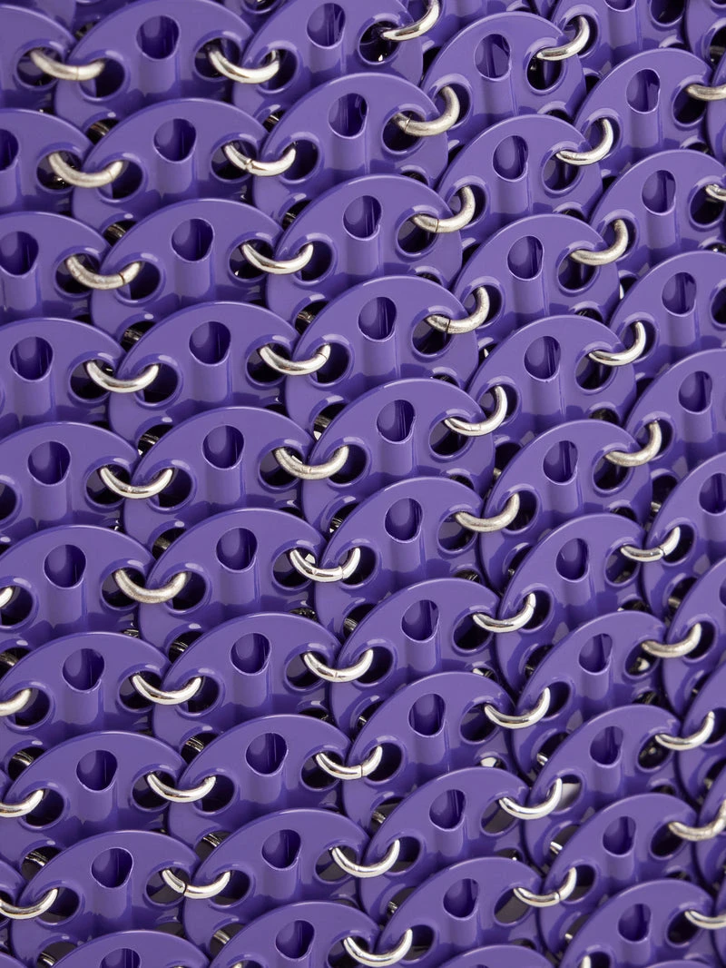 A reissue of one of the brand’s most iconic bags, first released in 1969, this statement purple purse perfectly illustrates the craftsmanship and aesthetic of the House Rabanne. It can be worn across the body as well as over the shoulder thanks to its adjustable chain.