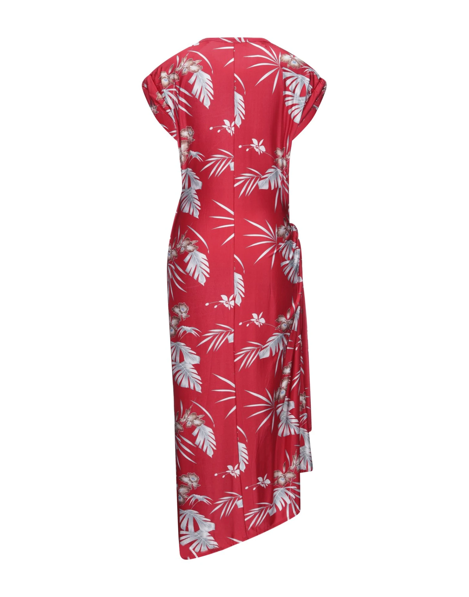 jersey, no appliqués, floral design, round collar, short sleeves, no pockets, dual side vents, side closure, unlined, stretch