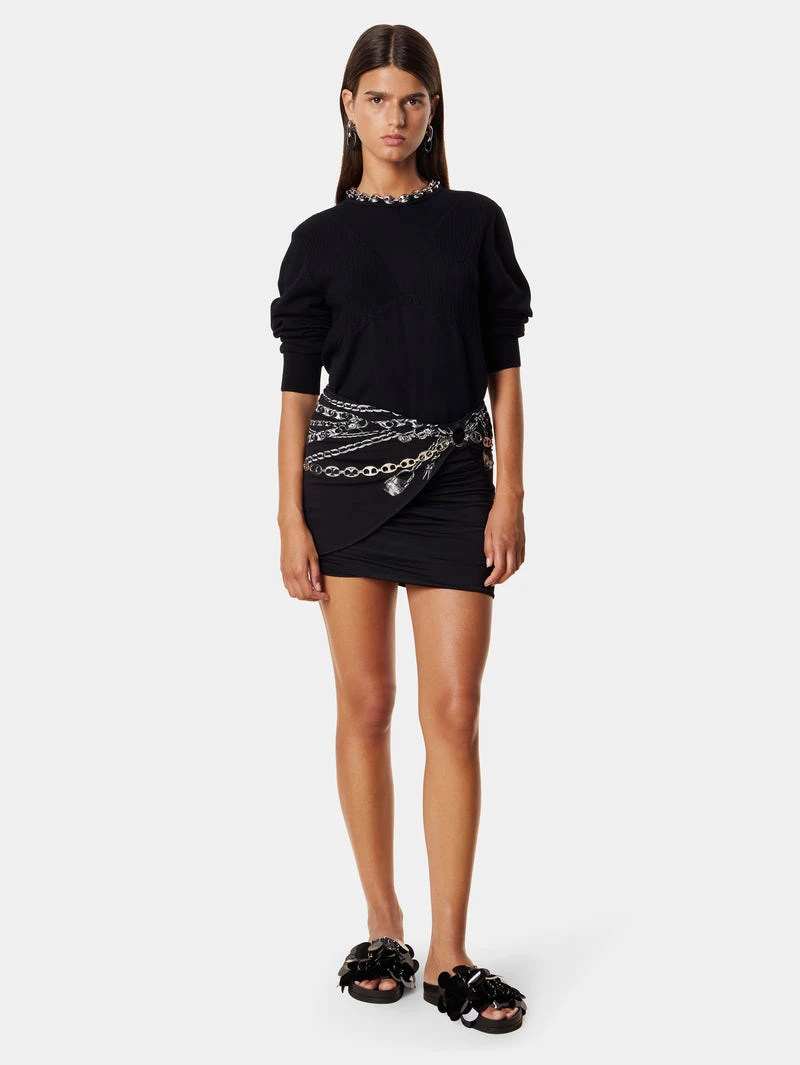 Short skirt Straight, fitted cut Fitted at the waist with a silver-finish ring Chain crafted from assembled silver-finish “Eight” links