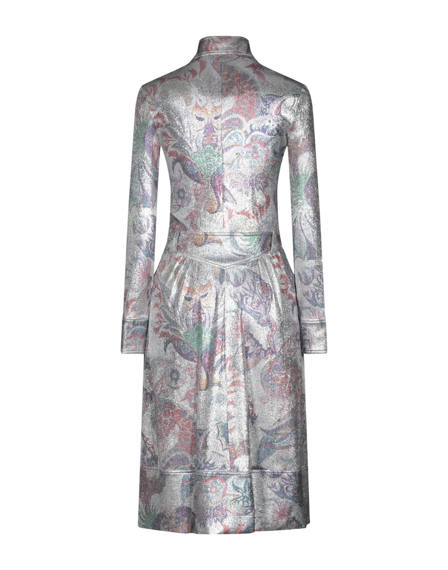 jersey, lamé, no appliqués, floral design, lightweight knit, bow collar, long sleeves, no pockets, front closure, snap buttons fastening, unlined, stretch
