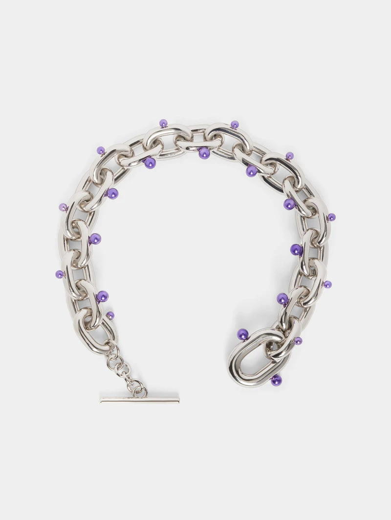 Paco Rabanne Silver XL Link Necklace With Pearls