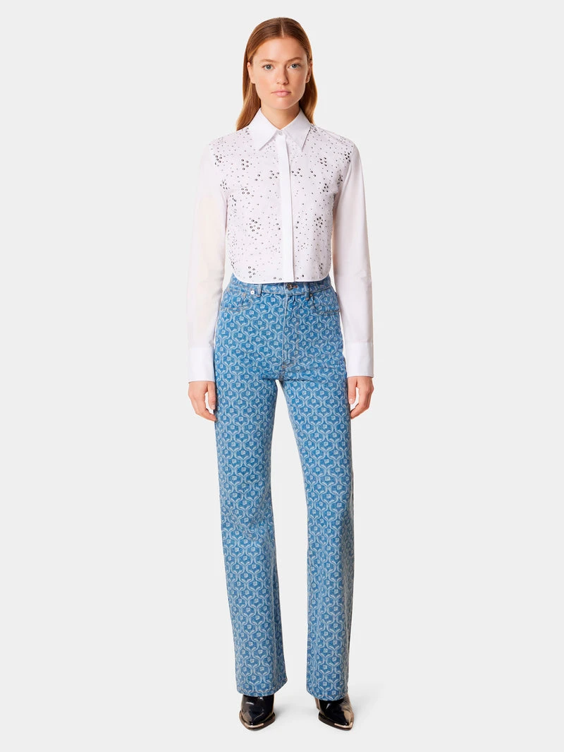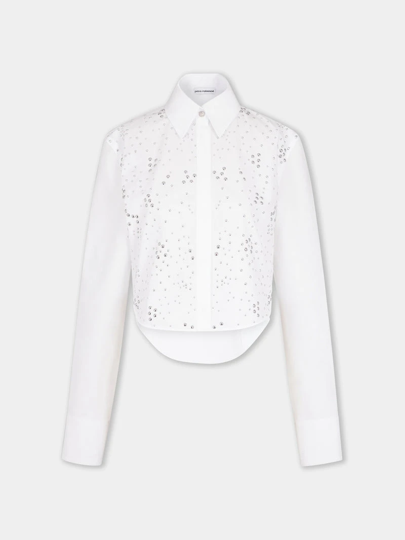 White shirt with studsOversized fitButtonhole on the frontLong sleevesShirt collar