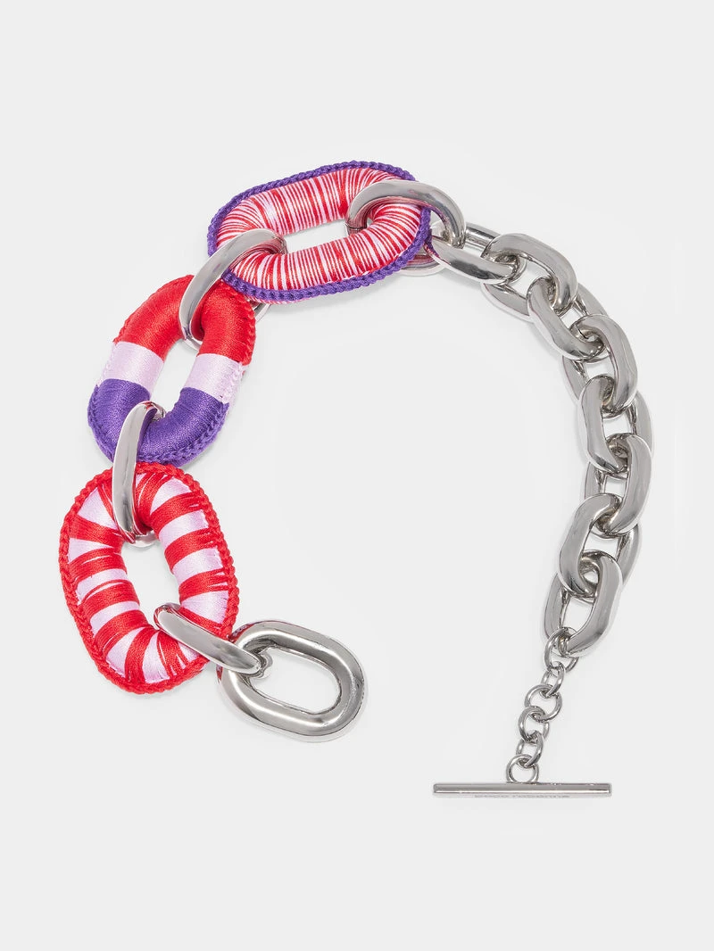 Paco Rabanne XL Link Embroidered Silver Necklace