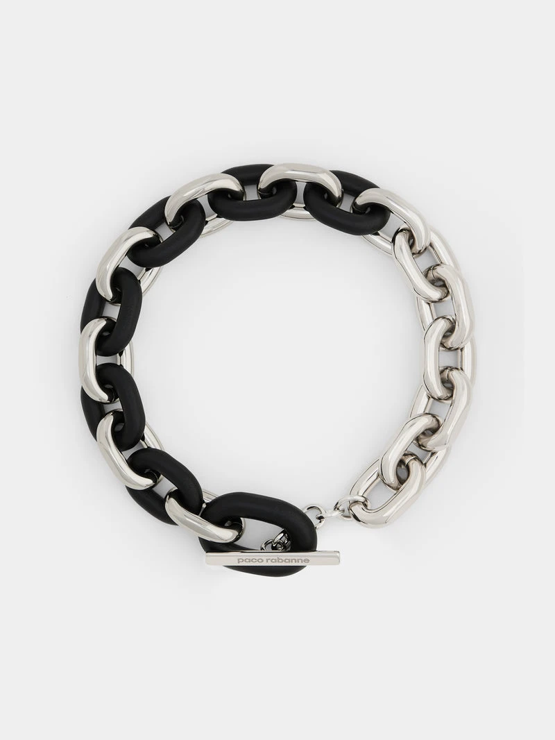 Paco Rabanne XL Link Necklace In Silver And Leather
