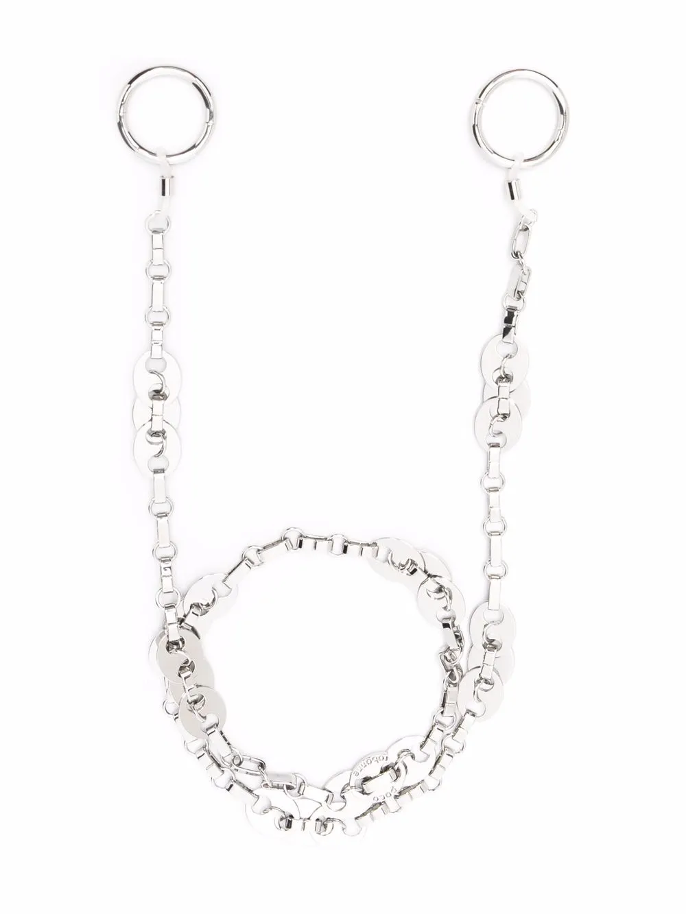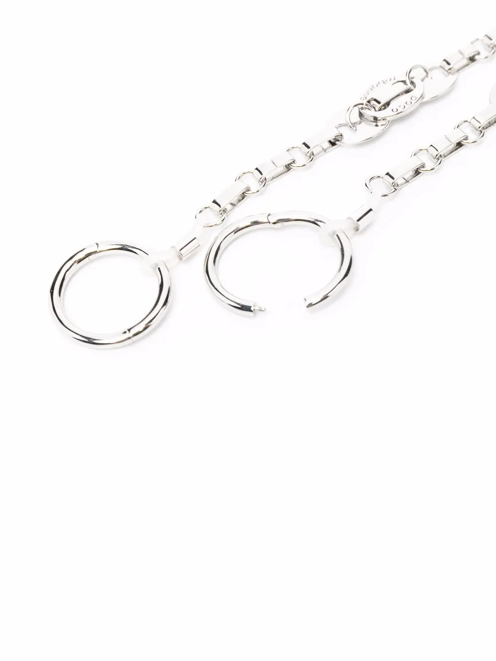 Silver brass logo-plaque brass keychain from PACO RABANNE featuring silver-tone logo plaque, silver-tone hardware and keyring attachment.