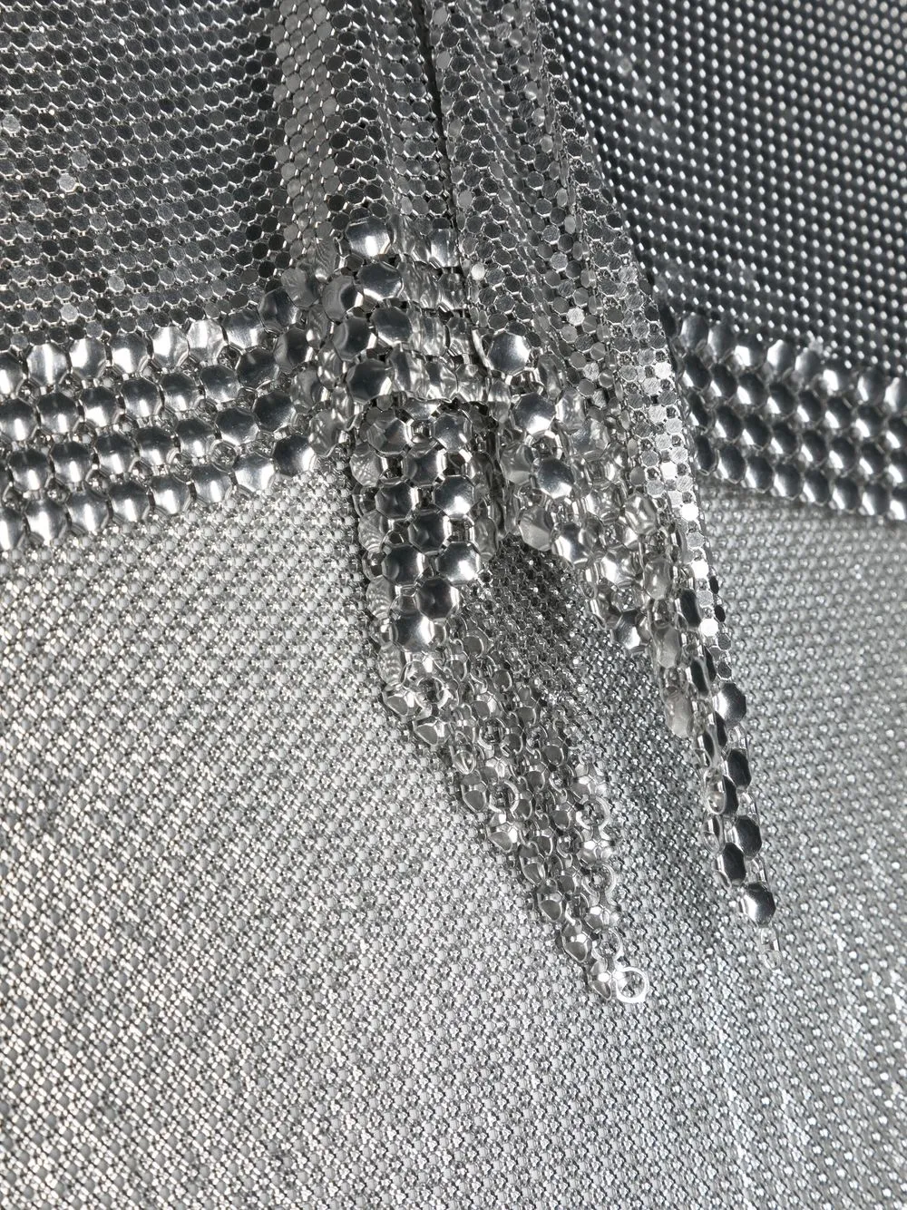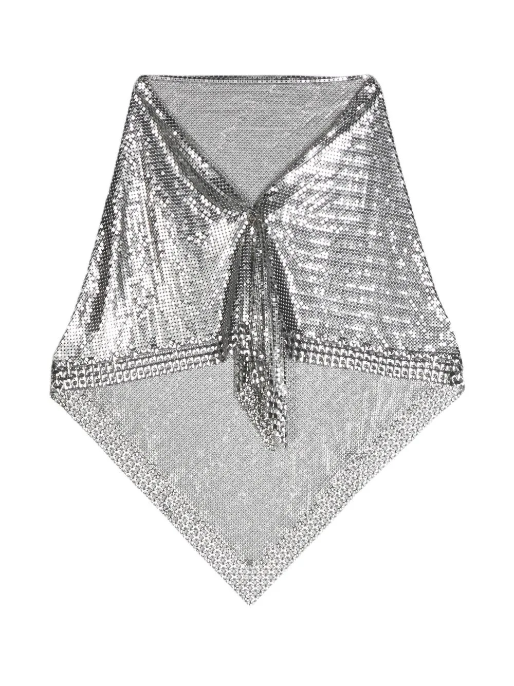 Paco Rabanne’s scarf is made from the brand’s signature chain-mail fabric. The metallic silver paillettes glitter from all angles.