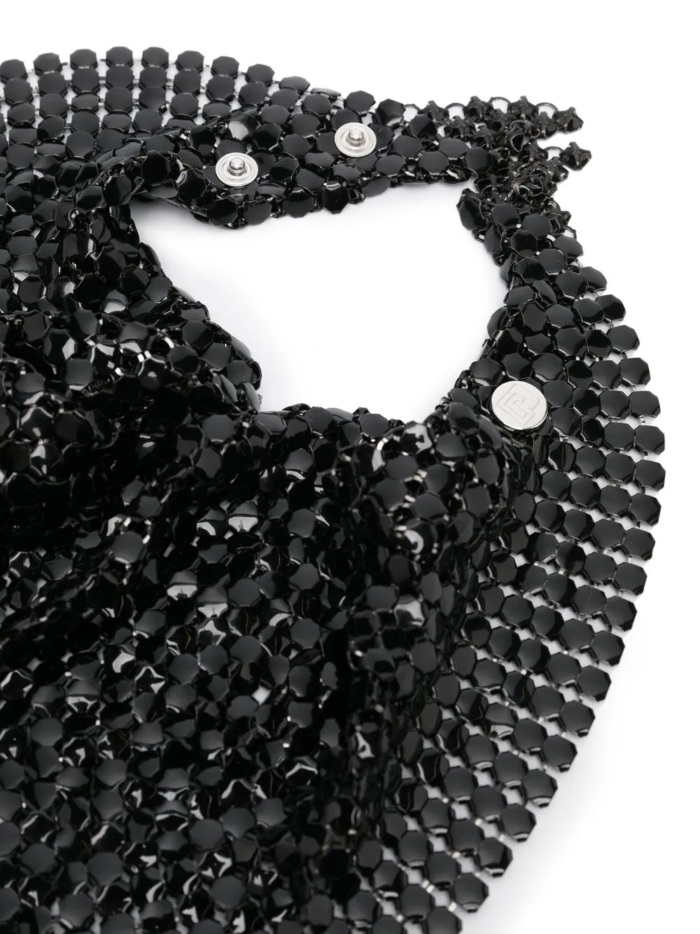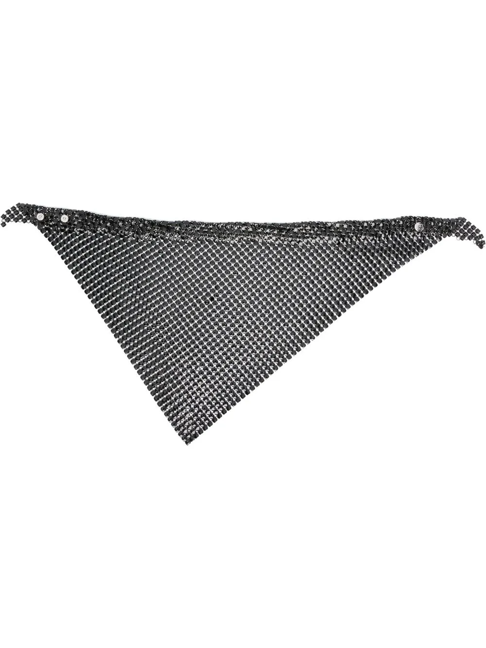 This black pixel scarf is inspired by Paco Rabanne’s 1969 collection. The accessory is made from lightweight aluminum and features a pointed silhouette that remembers a classic bandana.