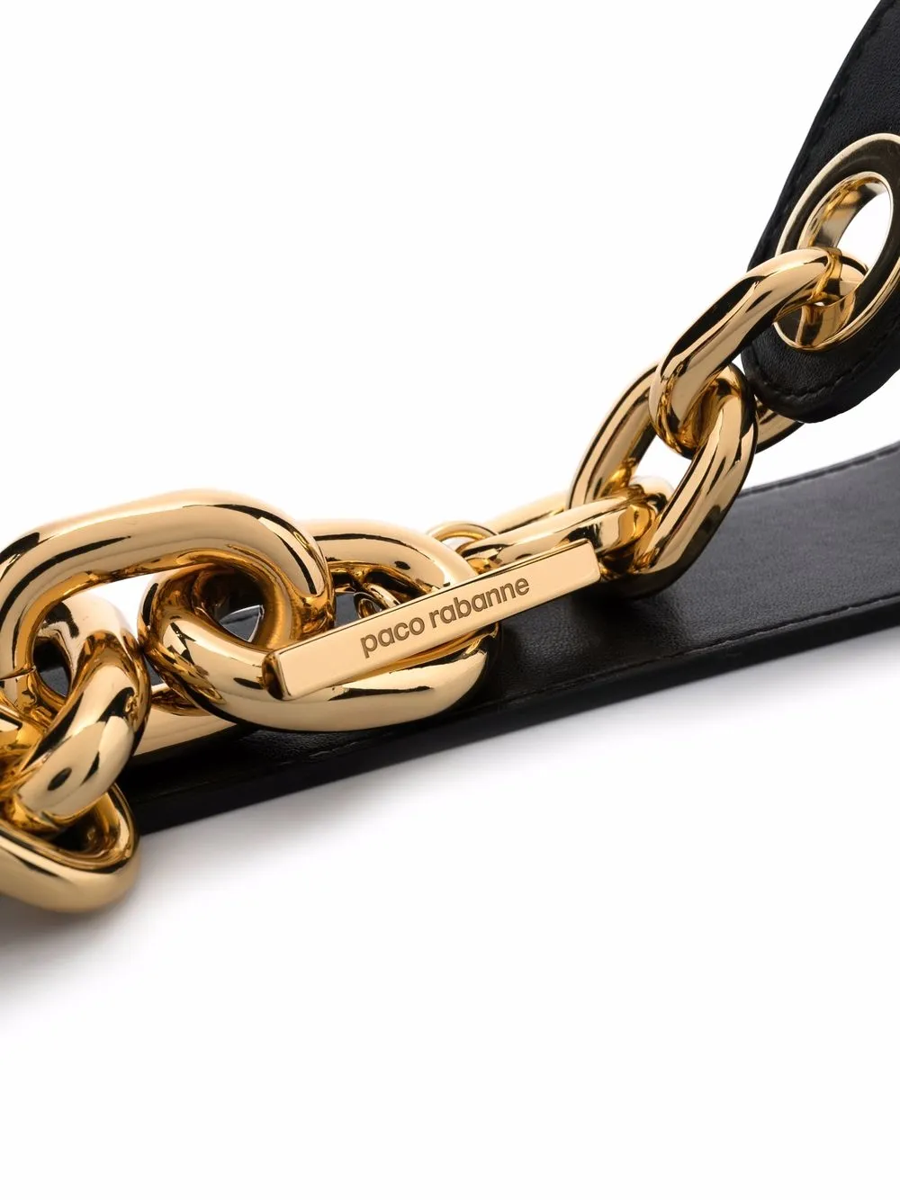 Black calf leather XL chain-link belt from PACO RABANNE featuring gold-tone hardware, chain-link detailing and bar-pin fastening.